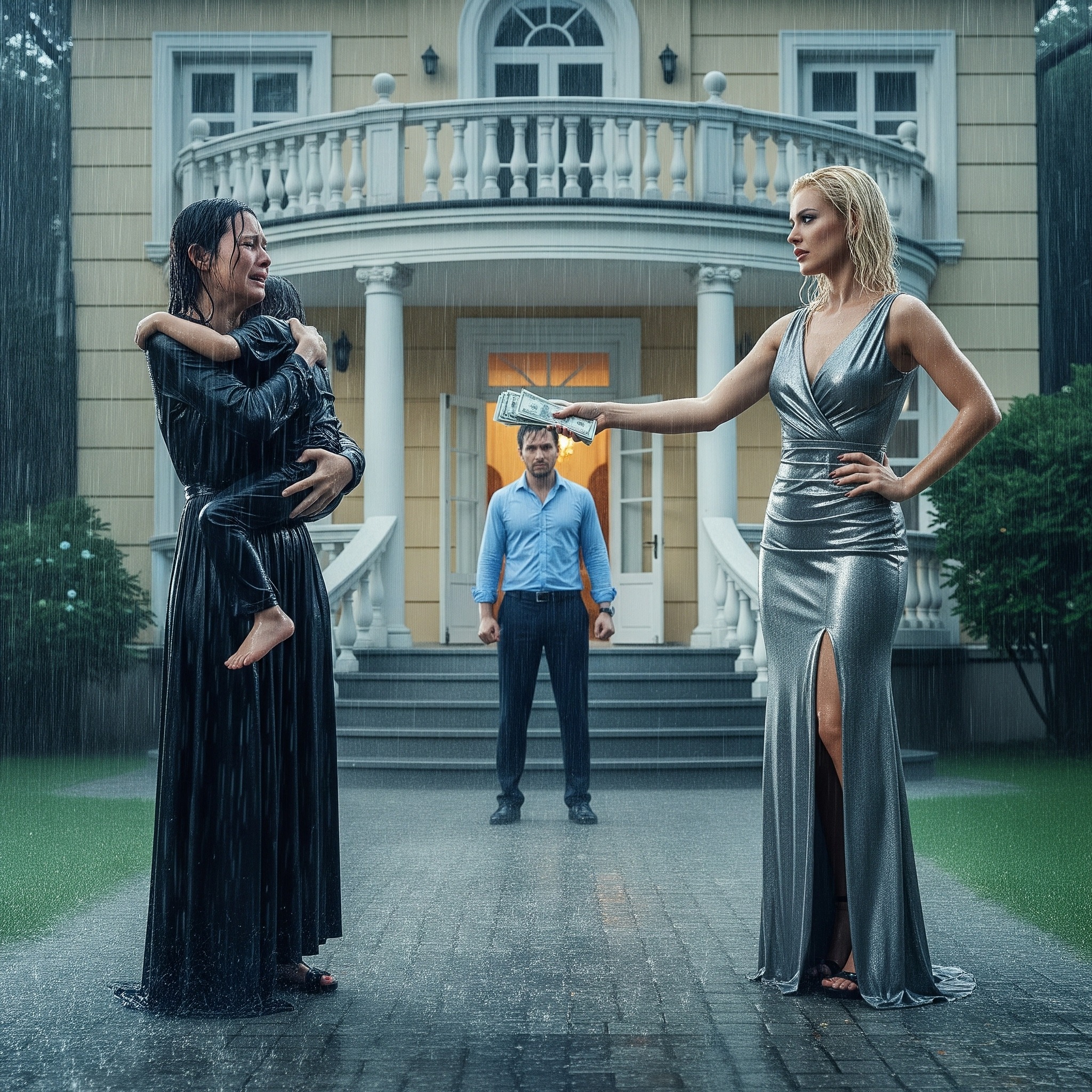 Grace turned. The red trench coat was brighter up close, but the woman inside it looked pale. Tiffany pressed a wad of damp cash into Grace’s hand—five hundred dollars, bills softened by rain and second thoughts.